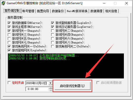1. 打开服务端中的引擎控制器,点击启动按钮