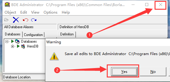 13. 关闭数据库,选择YES保存